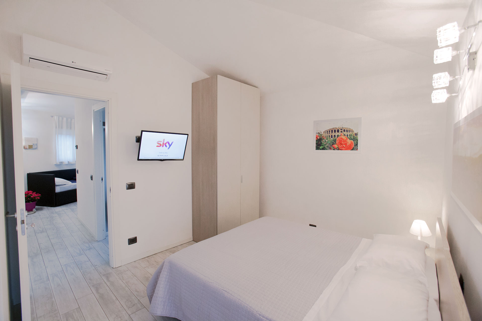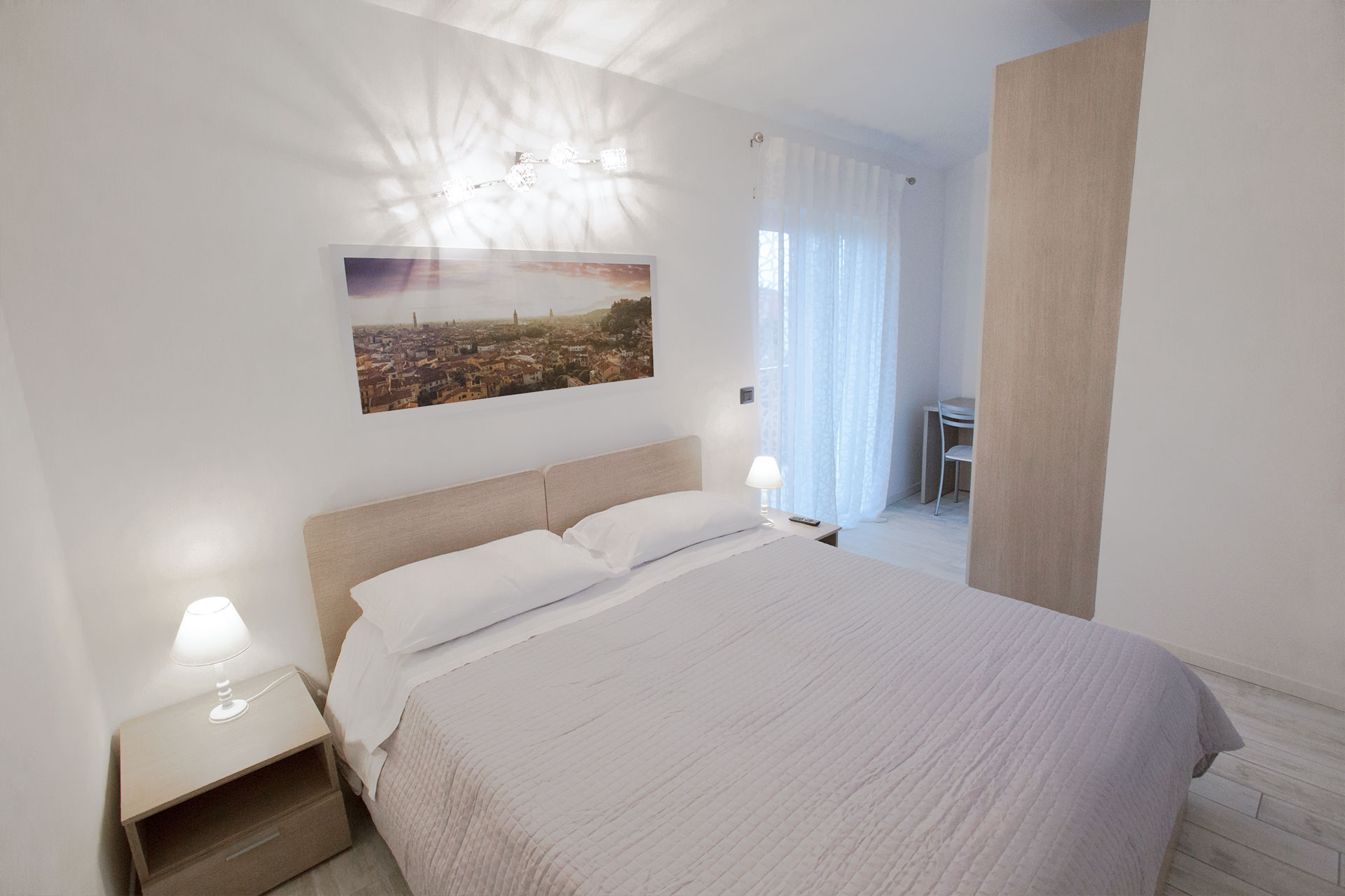 “Personale gentilissimo e disponibile, appartamento pulito, ben arenato (con due finestre e porta finestre che porta su di un balcone dove c’è una veduta di Verona), c’è tutto quello che può servire, anche ferro da stiro. Bagno nuovo e pulito con tutti gli asciugamani. Abbiamo trovato un mini kit di benvenuto appena siamo arrivati. L’appartamento è a un quarto d’ora di auto dal centro di Verona, vicinissimo all’ospedale di Verona, a mezz’ora di auto dai vari parchi di divertimento. Per noi è tutto ok.”